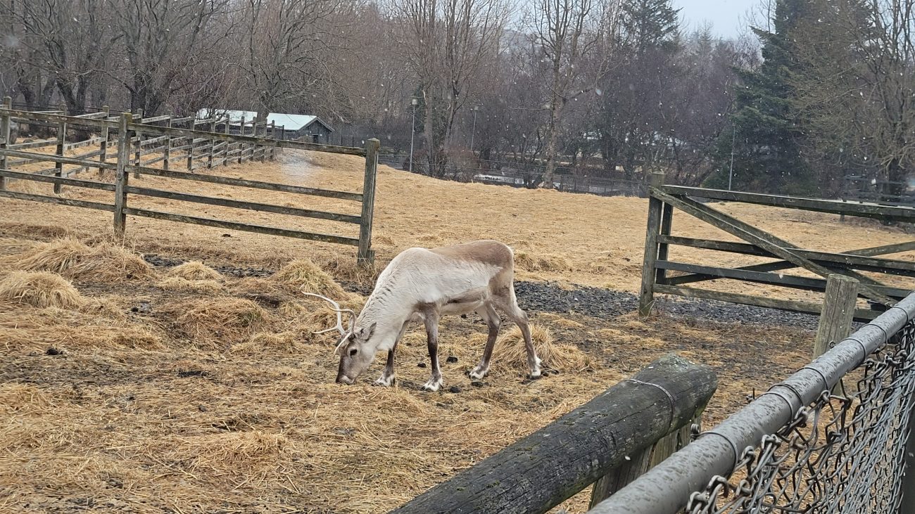 The only native land animal in Iceland is the Arctic fox, which is absolutely adorable! But there are other cool creatures like reindeer, a gyrfalcon, harbor seals (my fave), and minks. The majority of the zoo’s inhabitants are farm creatures, like pigs, cows, various goats, and the famous Icelandic horses. It also has a barn with smaller creatures like bunnies, guinea pigs, chickens, and pigeons. There were plenty of cute babies when we visited, which definitely made my day! The last part of the zoo is a small shed with a variety of exotic creatures, like poison frogs, an iguana, crabs, and beetles.