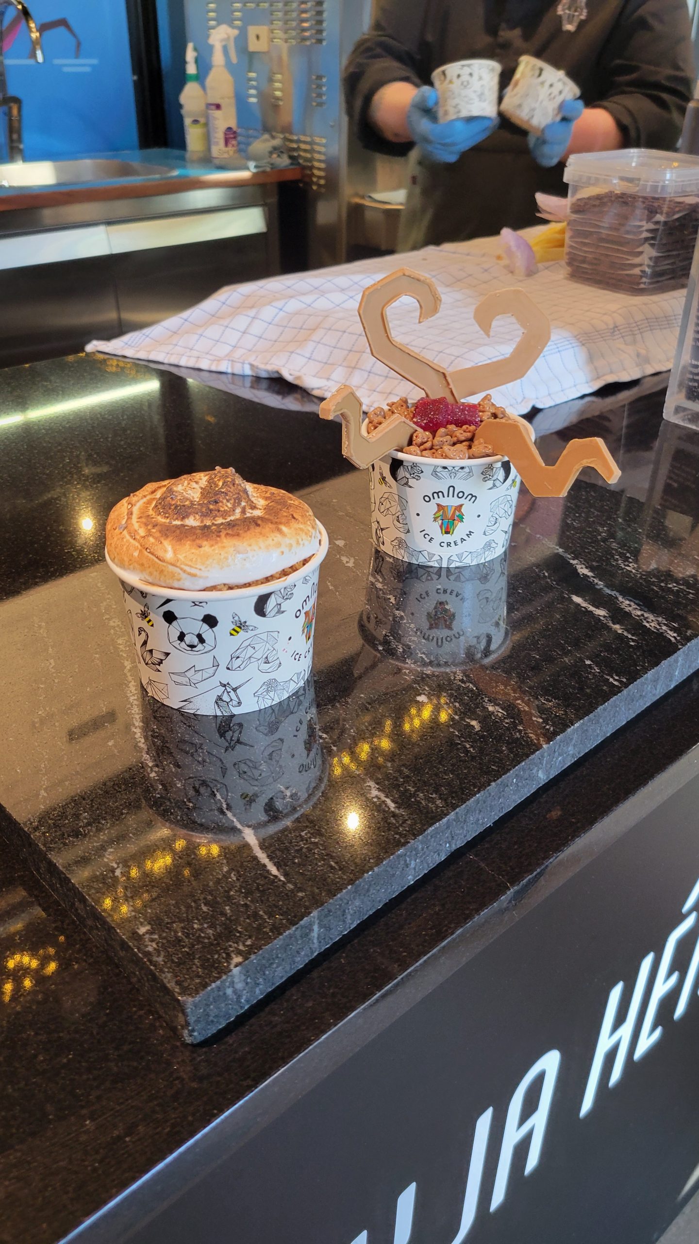 When you’re in the mood for a tasty treat, head over to the Omnom Chocolate Shop, right by the Lava Show! This little shop has a great selection of chocolate bars and bonbons, plus an artistic selection of sundaes! We grabbed a licorice chocolate bar and an ice cream creation that looked like a swan, featuring mango, a macaron, and waffle wings! It was delicious and surprisingly well-priced.